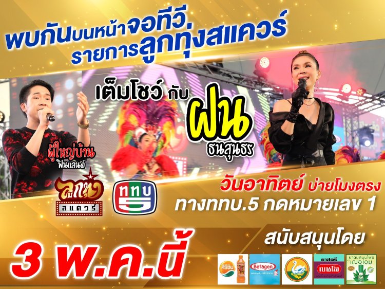 ลูกทุ่งสแควร์ ออกอากาศ วันอาทิตย์ เวลา 13.00 - 14.00 น. ช่อง 5 กดหมายเลข 1